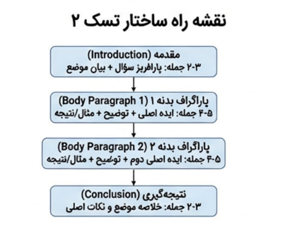 | تسک ۲ | ۴۰ دقیقه | ۱۰ دقیقه برنامهریزی + ۲۵ دقیقه نوشتن + ۵ دقیقه بازبینی |